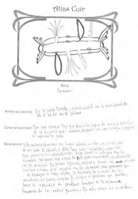 En el texto La curación como técnica. Basado en entrevistas de sabedores de la Amazonía (Santos, 2019) está recogido un dibujo de un joven aprendiz de curandero o de sabedor tradicional llamado He Guu de la etnia makuna. En este dibujo, se contempla un ritual de curación en el que los sabedores de la comunidad selvática usan una corona de plumas como material sagrado, debido a que tienen la creencia de que las plumas dan luz e iluminan el pensamiento o pueden llevar a la enfermedad si no son respetados los fines con los que se construyó la combinación de plumas. El dibujo de He Guu (pp. 57-59) busca mostrar que la curación es una técnica porque se debe seguir un orden en el ritual y es necesario usar elementos específicos como el carbón o el tabaco. Pero, sobre todo, el dibujo quiere transmitir que el quehacer del curador consiste en descodificar patrones en los vuelos de los pájaros, patrones de la selva, patrones de los rayos y del plumaje de las coronas. Así, esta corona de plumas es semejante a una ventana del computador, pues cada plumaje guarda muchos datos que se usan en los saberes de curación.