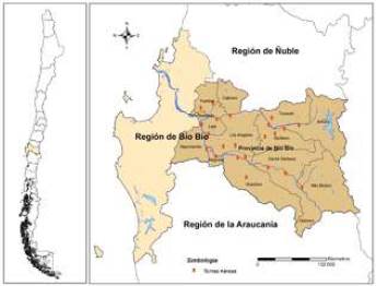 La Provincia de Biobío se localiza en la región del mismo nombre y tiene una superficie aproximada de 16.227 km2, ubicada entre los paralelos 37° y 38° de latitud sur y los 71° y 73° longitud oeste.5 Delimita al norte con la Región de Ñuble (Ministerio del Interior y Seguridad Pública, 2017),6 constituyéndose como un punto importante de referencia limítrofe el puente sobre el río Itata ubicado en la autopista de la Ruta 5 sur. Al Sur, limita con la Región de la Araucanía, específicamente con la Provincia de Malleco, destacando como hito principal el viaducto Malleco sobre el río del mismo nombre. Al Este se impone como frontera la Cordillera de Los Andes, conectándose con Argentina de norte a sur por los pasos fronterizos de Pichachén, Trapa-Trapa y Pucón Mahuida. Finalmente, al Oeste, con las Provincias de Concepción y Arauco que articulan el límite político-administrativo, teniendo como una importante barrera orográfica la cordillera de Nahuelbuta emplazada al sur del Biobío.7
