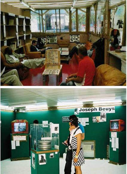 Uno de los referentes más destacados en el ámbito internacional es el Museo precario Albinet (Véase figura 2), ubicado en la ciudad de Aubervilliers, Francia. Surgió como un proyecto en el que el artista Thomas Hirschhorn propone construir un museo precario en un solar vacío, con materiales económicos y mucha recursividad. La construcción de este museo fue por medio de una organización comunal en donde los residentes de la zona estuvieron implicados en todo el proceso de construcción que duró aproximadamente dos años. Esta iniciativa surgió después de que el artista identificara que los residentes de esta ciudad estaban ubicados en la periferia, en donde había un acceso restringido a eventos culturales para la población. El proyecto permitió que tuvieran acceso a obras de artistas del siglo xx como Beuys, Mondrian y Duchamp. Obras que fueron prestadas por el Centro Nacional de Arte y Cultura Georges Pompidou.