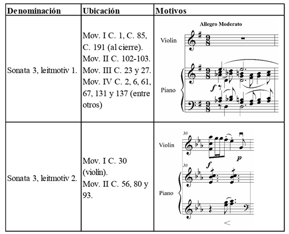 Figura 2: Material motívico y leitmotiv de la sonata n.o 3