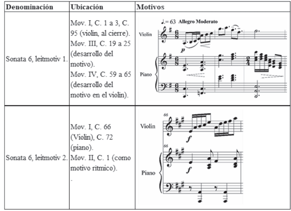 Figura 5: Material motívico y leitmotiv de la Sonata n.º 6