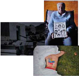 El trabajo se hizo con cariño, con ganas, entonces no hubo mucha resistencia, y en la última foto quisimos representar la figura femenina, primero porque éramos solo chicas; y segundo, quisimos representar un país con una historia realmente al desnudo pero que la gente realmente no quiere conocer, es una historia que está ahí, como lo acabé de decir, al desnudo, que podemos saber, investigar, formar, que podemos participar y, sin embargo, muchas veces queda en el olvido. (Exposición Festival de la Memoria, Manuela Bello, grado noveno, 5 de noviembre de 2015).